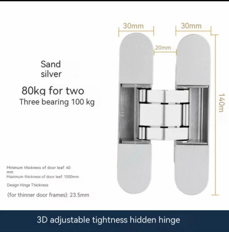 Hinge ที่ไม่มองเห็นของ Heavy Duty เป็น HINGE ที่ซ่อนอยู่ที่สามารถปรับได้ใน 3 มิติ ซึ่งหมายความว่ามันสามารถปรับได้ใน 3 มิติ ทําให้การติดตั้งและการปรับแต่งง่ายหมุนมุมถูกทําจากวัสดุที่มีคุณภาพสูงด้วยน้ําหนักสูงสุด 120 กิโลกรัม หมุนนี้สามารถรองรับประตูที่หนักที่สุดได้ง่าย